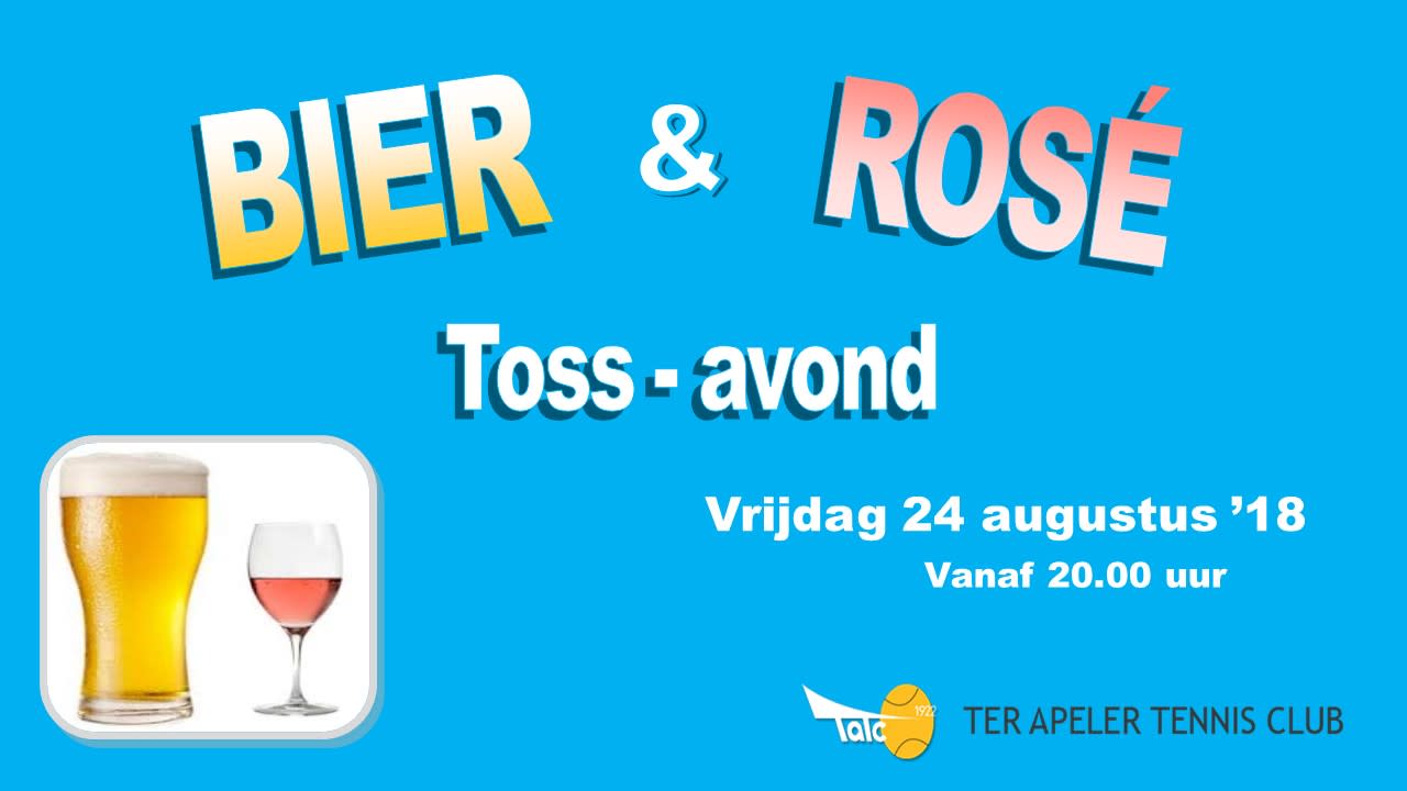 Vrijdag 24 augustus staat er weer een Bier & Rosé toss-avond gepland! We beginnen om 20.00 uur. Jij komt toch ook?